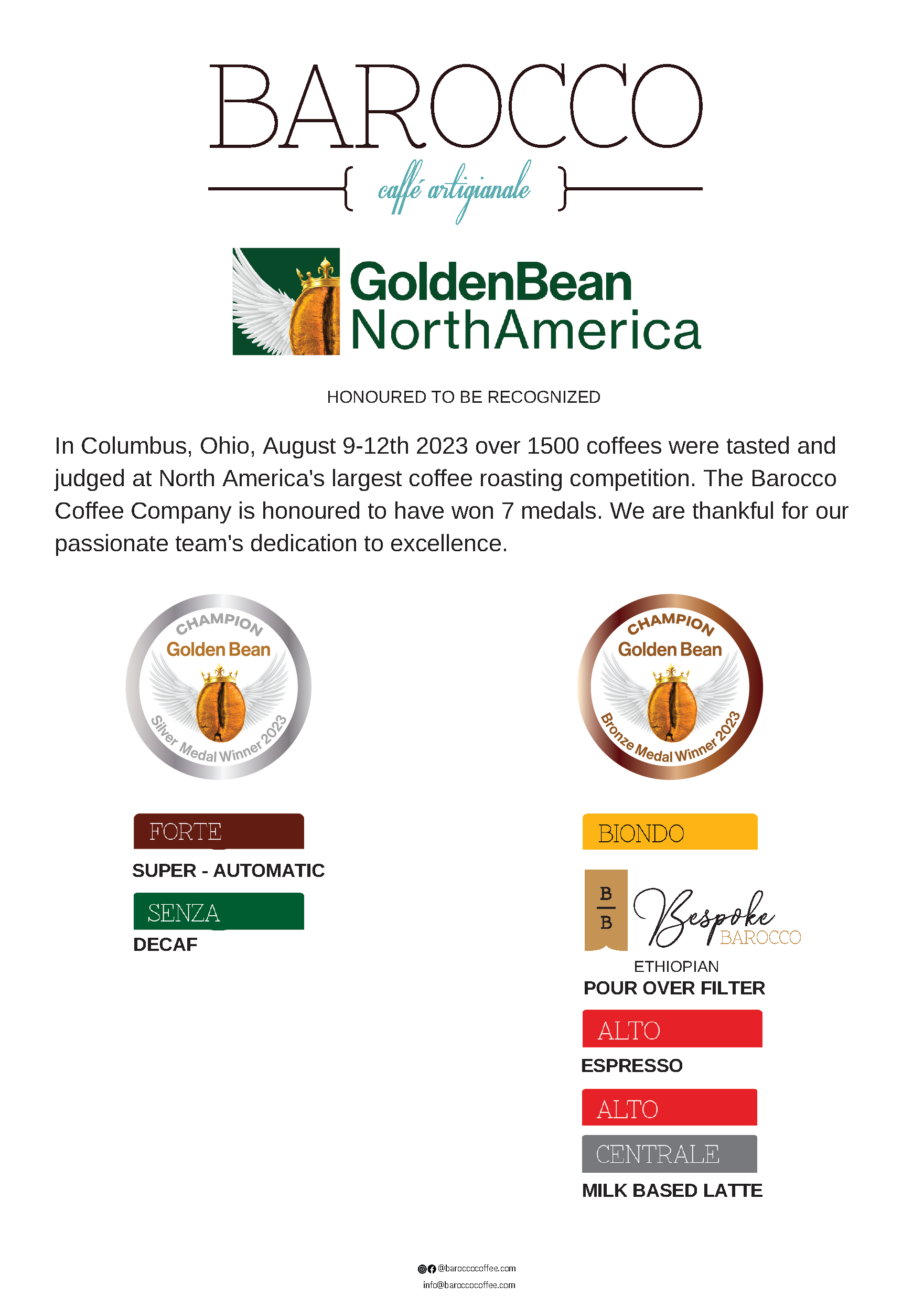 Barocco Coffee 2022 Golden Bean Awards