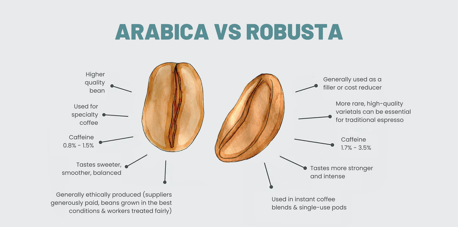The bean actually comes from a cherry that come from the coffee plant. The two main types of coffee plant are Arabica (coffee Arabica) and Robusta (coffee canephora).
